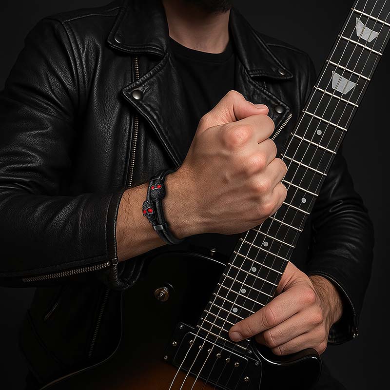 Dieses Armband ist mehr als Schmuck – TOXIC ist pure Ausstrahlung. Zwei kräftige Stränge aus weichem, geflochtenem Leder schmiegen sich angenehm ans Handgelenk und bieten maximalen Tragekomfort.